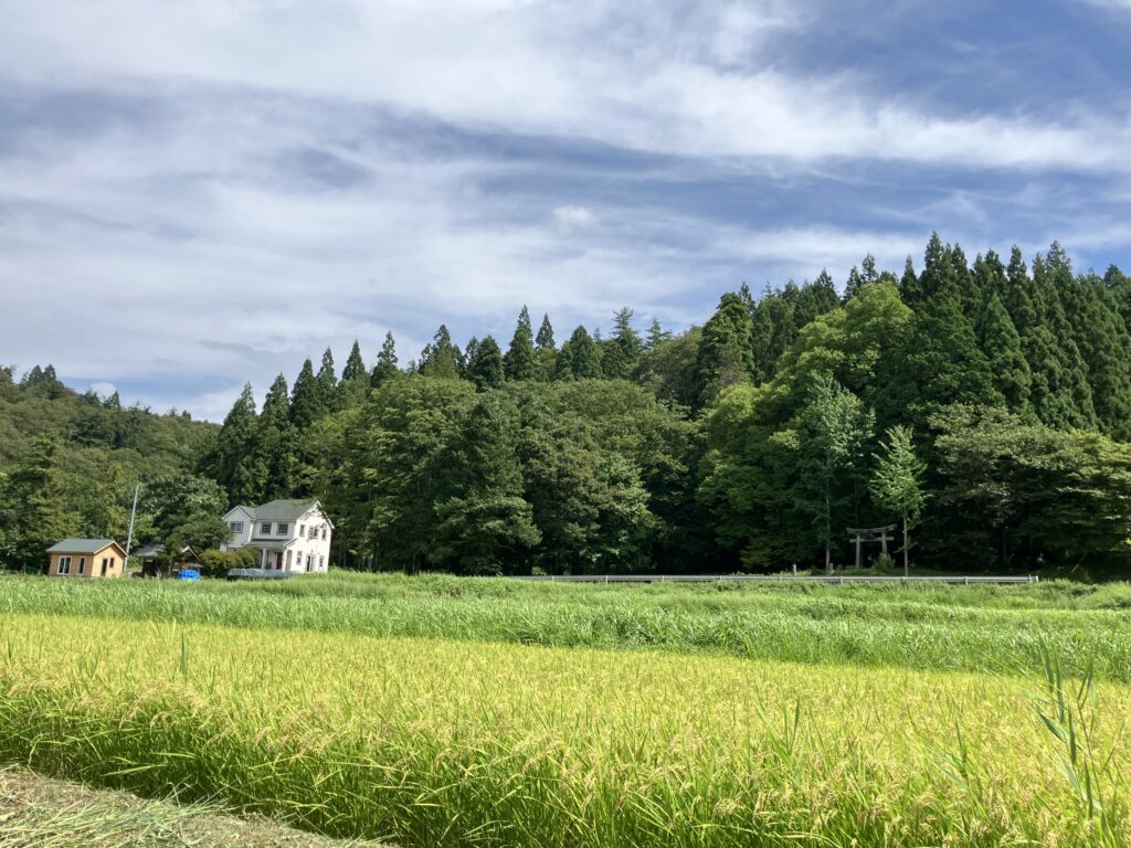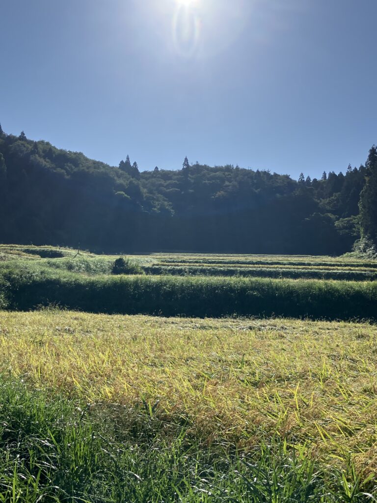 秋の実りに輝く里山の神々しい景色を掲載します。
